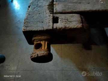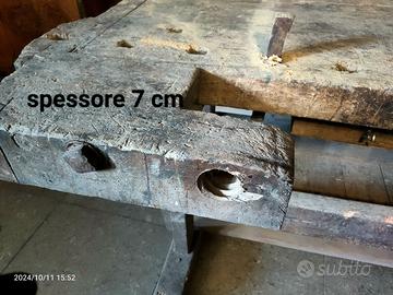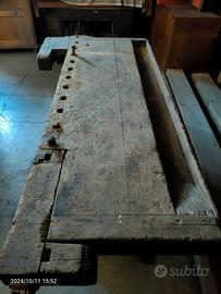 Antico tavolo da falegname da restaurare. Le gambe sono da consolidare o sostituire. Il valore è praticamente del solo piano. Possibilità di consegna su richiesta. Dimensioni riportate in foto.