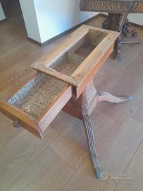 Cerco esperti per valutazione di questo antico tavolo in legno con cassetto, diametro 140cm. Da notare dettagli chiodi forgiati (no viti) ed inserti piedi in metallo. Valuto offerte adeguate alla quotazione dell'articolo.