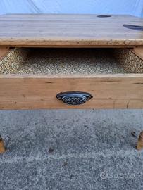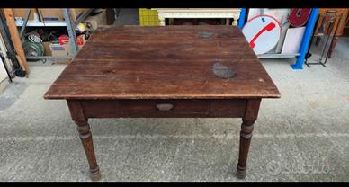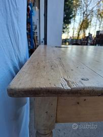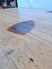 Antico tavolo da stiro con i segni profondi del ferro . il mobile è stato restaurato portato a legno naturale tratto con antitarlo e verniciato ,il cassetto è stato rivestito con carta Giglio . Pezzo unico ottimo per arredamento osterie ristoranti agriturismo.