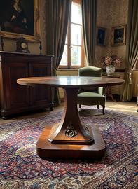 Elegante tavolo di stile Impero, realizzato in legno di mogano, risalente alla