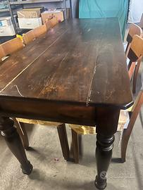 Antico tavolo “osteria” con gambe a cipolla Legno massiccio 175x70 cm Alto 81 cm