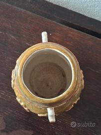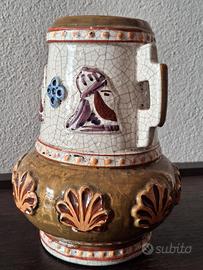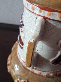 Bellissimo e antico vaso etnico, dalla forma gradevole, in ceramica, dipinto a mano. Indice di autenticità, il craquelè, che sono quelle piccole crepe che avvolgono la superficie dell'oggetto, dovute alla cottura della ceramica e dal tempo. In eccellenti condizioni, ma da segnalare una piccola scheggiatura su un manico e leggeri segni del tempo, come da ultima foto. Vaso raro, se non unico. Misure: 17 cm di altezza, 13 cm di larghezza. Imballo sicuro e spedizione veloce. Non esitate a farmi domande o richiedere ulteriori fotografie. Non leggete quanto segue. #teiera #zuppiera #cornice #fogliaoro #english #england #sheffield #elegance #vintage #tavola #chic #tavolachic #peltro #epoca #1900 #lusso #lattiera #ceramica #antico #antique #vintage #argent #ferro #maiolica #silverplated #cristallo #quadro #1800 #legno #lavorazioneasbalzo #Sheffield #France #England #intaglio #altorilievo #Cina #orientale #design #anni70 #porcellana #limoges #Murano #Mazzega #Abatjour #comodino #Liberty #artnouveau #rame #ottone #lotto #zuccheriera #Ginori #Doccia #Richardginori #tazzine #cestino #ebano #campana #alpacca #silverjewellery #silver925 #silvervintage #oliera #saliera #pepiera #artdeco #Russia #russian #bambù #Lavoratti #vassoio #fiorentino #Firenze #opalina #gioiello #oro #gold #jürst #Berlin #germany #villeroyboch #capodimonte #ghianda #wedgwood #jasperware #cervo #scarabeo #fiori #paiolo #antoniacampi #fiori #sottobicchiere #thun #macabo #cusanomilanino #aldotura #macaboitaly #capodimonte #mirror #specchio #Brandani #buddha #buddhastatue #buddhasculpture #calamaio #smalto #Bassano #plateau #turtle #curiosity #curiositè #cabinet #taxidermie