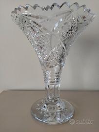 Elegante vaso fiori vintage in robusto Cristallo di Boemia molato ed intagliato, stile classico, tutto lavorato in rilievo, anni 60, praticamente perfetto