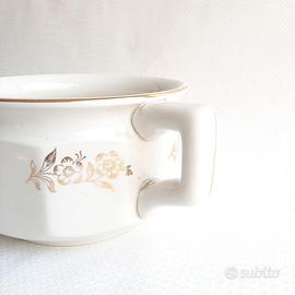 Antico vaso in ceramica con decorazioni floreali color oro dimensioni 19 x 11 cm. vintage Ben conservato C00008675-1