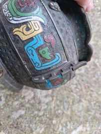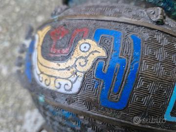 Ottime condizioni con bellissima patina originale del tempo che ne attesta l'epoca. Smalti ben conservati e colori vivaci Ideale per collezionisti di arte orientale o come pezzo d'arredo unico e di carattere.