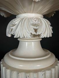 Importante e scenografico vaso monumentale italiano in alabastro, realizzato nel XIX secolo, presentato su elegante colonna con piedistallo, concepito come opera scultorea di grande prestigio, lusso e valore collezionistico. L’insieme si impone per dimensioni, qualità esecutiva e raffinatezza decorativa, risultando ideale per ambienti di rappresentanza di alto livello.