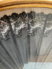 Antico ed elegante ventaglio in pizzo nero concepito e creato a mano per serate importanti