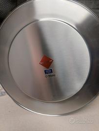 Antipasteria Gottinghen inox argento 18/10 – Anni ’70 – Vassoio con bordo in oro con 5 scomparti in cristallo.