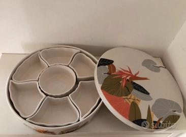 Bellissima Antipastiera prodotta da Arnolfo Di Cambio, diametro 25 cm, altezza 6 cm, negli anni '80, in vetro-ceramica bianca con all’interno 7 ciotoline bianche.