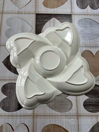 vendo antipastiera in ceramica bianca con decorazioni in rilievo floreale. misura circa 32x32 cm
