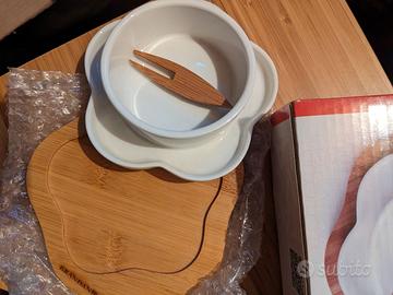 Ciotolina antipastiera ceramica e bamboo con vassoietto e forchettina in bamboo (BRANDANI). Nuovo, mai usato, con scatola originale. Consegna a mano a Firenze nord e Sesto Fiorentino