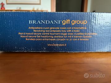 Antipastiera con piatto girevole e piattini a forma di cuore dotati di 4 forchettine. Marchio “Brandani”. Mai utilizzata.