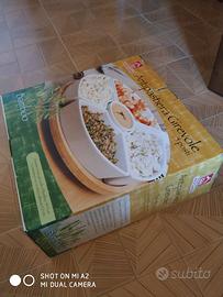 Antipastiera girevole con vassoio in bamboo e ciotole in ceramica, ottimo per pranzo con amici NUOVO ancora in scatola