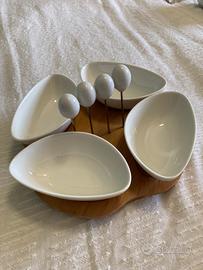 Antipastiera porcellana set 4 pz. Con supporto Bambù