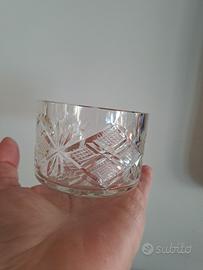Si tratta di una antipastiera vintage costituita da 1 piatto grande piano e 5 contenitori, tutti in cristallo di Bohemia finemente intagliato (vedi foto).