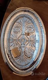 Antipastiera in cristallo con supporto in acciaio e impugnatura placcata oro 4 scomparti dimensioni 40x27 cm gr1987