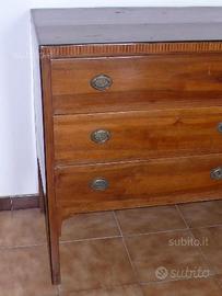 Antico cassettone epoca direttorio 700. a 3 cassetti in noce massello, in patina originale. como' splendido ed elegante imponente e di molto valore. autentico 700 conservato non ricostruito o rifatto ma originale. praticato senza interventi invasivi restauro conservativo fine 900, da maestro restauratore, mantenuti segni e tracce di utilizzo sulla coperta. vero antiquariato. misure l 127 p 56 h 96