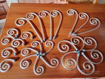 Ideali per ricambi o per antiquari e restauratori come da foto vendo € 150 i n° 25 Riccioli rigatè in vetro di Murano trasparente interno soffiato oro in ottimissime condizioni di cui n° 6 da 10 cm, n° 6 da 12 cm, n°6 di 14 cm, n° 3 di 32 cm e n° 4 da 35 cm.nossoli incastro cm 1,5 .