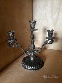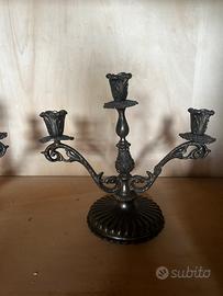 Antica jardiniere e candelabro in metallo