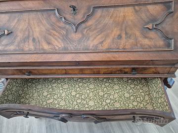 Vendo Mobile antico a specchio con cassetti, ribalta e ripiani stile Impero (XIX secolo). No certificati di antiquariato. Vero Legno. Interni in velluto verde. Misure (106x245×53). Disponibile solo ritiro in loco.