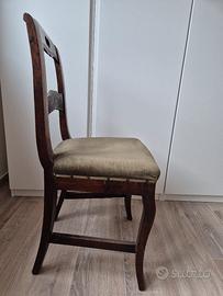 Vendo 5 sedie stile impero (XIX secolo) in buono stato, solo 1 sedia necessita di sistemazione. Ritiro a domicilio, no spedizione.