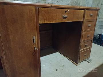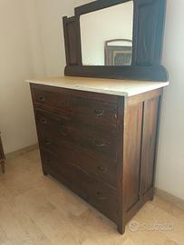 letto sardo piazza e mezza, comò con piano in legno,scrittoio con cassetti, penna stilografica Columbus 40 extra con calendario su piano in cristallo,culla e baule