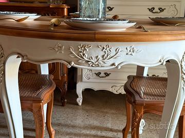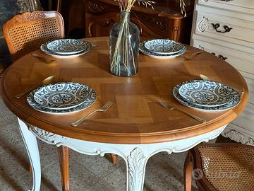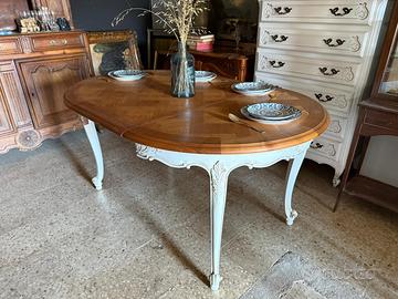 Tavolo provenzale tondo allungabile. Alt 80, diametro 110, allungato 210. Restaurato bianco shabby