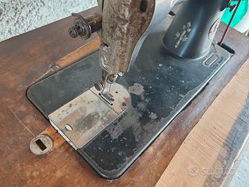 Macchina da cucire Singer. Funzionante. Tutto originale. Piano in legno con porzioni scollate, mancanti. Un po' di ruggine