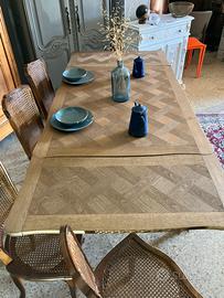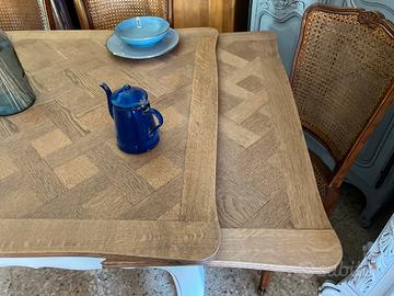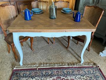 Tavolo provenzale restaurato shabby, alt 78, lung 130, larg 100, allungato 225.