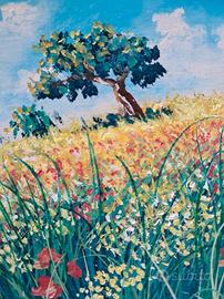Opera d'arte "Luce sul prato" di Antonino Cammarata, olio su tavoletta, dim. 20x20, con autentica.