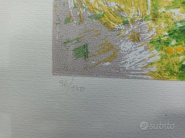 Antonio Pedretti Giardino Fiorito, anni Novanta litografia a colori cm 65x87 Tiratura 96/150 in cornice stato eccellente.