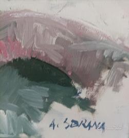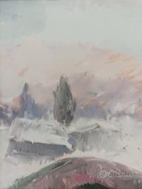 Antonio Sbrana, Nevicata nella campagna toscana, olio su tavola, cm. 35 x 50, firmato.