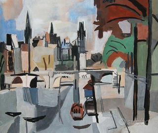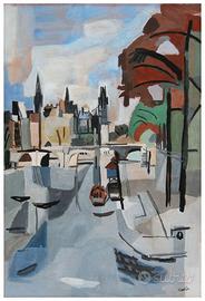 Antonio SCORDIA, "Pont Neuf, Paris", tempera su carta, anni' 50, cm. 56x37, firmata in basso a destra, incorniciata. L'autenticità dell'opera è stata confermata via e-mail dal Dott. Paolo Scordia, figlio dell'artista e responsabile dell'Archivio Scordia