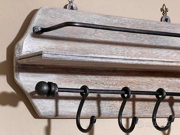 Apendino shabby cucina o bagno per appendere canovacci, mestoli o salviette, restaurato e finito a cera. Dimensiono 41x17x10 cm