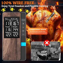 Termometro Carne, Apkezel Termometro BBQ con APP, IP67 Impermeabile Termometro Carne Con Doppie Sonde per Barbecue, Forno, Griglia, Cucina, Girarrosto