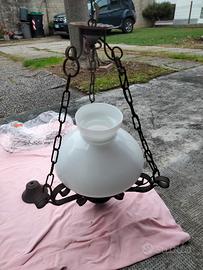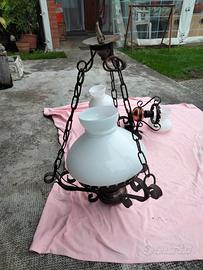 Apliques attacco E27 con paralume in vetro bianco e lampadario abbinato sempre con attacco E27.