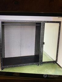 Vendo mobili collocati come appenderia , ma possono essere anche contenitori per arredo di design per attività e abitazioni. Sono in ferro brunito con ruote per facili spostamenti . Sono composti da 2 armadi con appenderia a €270 cadauno e un armadio con porta a specchio e scaffali a €190. Vendibili anche singoli