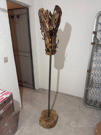 Cerchi un pezzo d'arredamento che lasci il segno? Vendo splendido appendiabiti da terra realizzato a mano, un pezzo unico che unisce il calore del legno naturale allo stile industrial moderno.