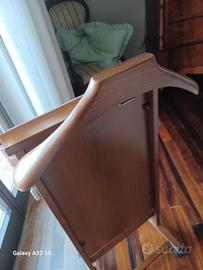 utile accessorio per la camera da letto:ci si spoglia e si appendono i capi ordinati senza pieghe pronti per indossarli ancora.si apre a portafoglio per mettere i pantaloni e ripristinare la piega perfetta.piccolo ganciò laterale per cravatte e cinture.ritiro a domicilio bari zona poggiofranco