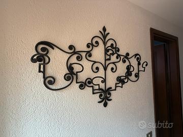 Vendo appendiabiti in ferro battuto, con otto ganci, elegante e poco ingombrante; quando non serve diventa una bellissima decorazione a parete. Vendo causa cambio casa. Misure 103x74 cm