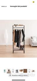 Appendiabiti in Metallo con Ripiano in Legno, 2 Livelli, Nero, Design Moderno, Solido, Anti scivolo, Per Camera, Studio, Armadio, Abbigliamento e Scarpe, Montaggio Facile, PI-B2