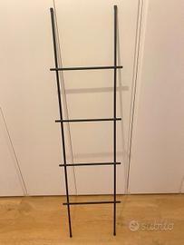 Scala in metallo nero ,autoportante, da parete , per bagno , soggiorno , cucina ,supporto per asciugamani ( 4 ripiani nero ) . Altezza 43cm larghezza 10 cm .