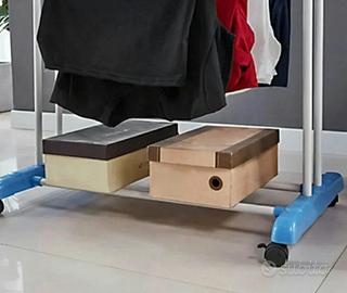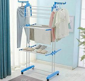 Stendibiancheria pieghevole a 3 livelli, stendibiancheria (66,1"H x 19,3"W x 30,3"L, acciaio inossidabile con quattro ruote girevoli, blu, grigio