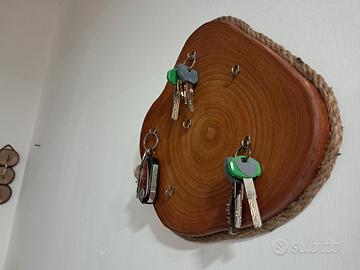 appendi chiavi in legno, con corda di canapa diametri 32 cm spessore 3 xm