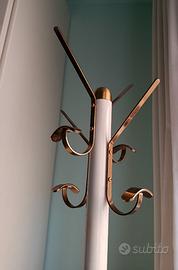 Appendiabiti a colonna in metallo laccato bianco, con 4 ganci doppi ottonati. Altezza massima cm 181 / Diametro base: cm 35.