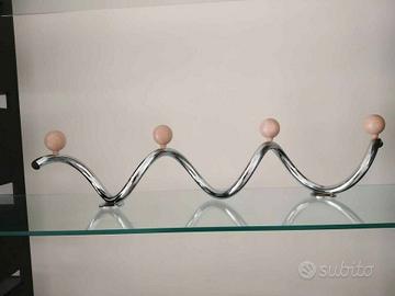 Appendiabiti a muro con 4 Pomelli in legno di Faggio. Struttura in Acciaio rifinitura Cromato Misura cm 80x18 h
