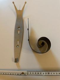 Appendiabiti a muro a forma di chiocciola, marca Arti e Mestieri. base mettallo argentato e spirale in metallo brunito marrone