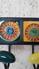Appendiabiti in ferro con piastrelle in ceramica colorata e lavorata. La struttura è in ferro nero con le mattonelle colorate incastonate.Molto robusto e resistente. Mis. mattonelle cm. 8 h x 30 larghezza. Misura totale con ganci 30x15.