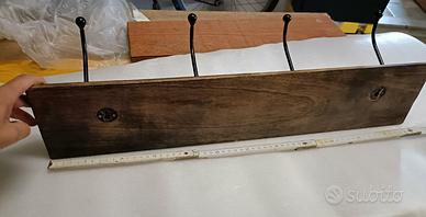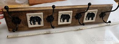 appendiabiti in legno e ferro battuto con decoro in ceramica. Mai stato utilizzato.