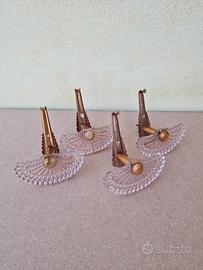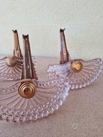 Vendo graziose appendiabiti anni 40. La forma a ventaglio di vetro rosa le rende meravigliose. La struttura é in ottone in buono stato con note del tempo. Misure: 15x15x8. Ritiro a mano o possibilità di spedizione.